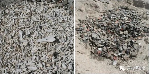 肃北马鬃山古玉矿遗址位于肃北马鬃山镇东西戈壁滩各有一处,从遗址周围地表所发现的矿渣、陶片及兽骨、玉器、青铜器等遗物来看,该矿自青铜时代开始开采,沿用至东汉,下限可能还要靠后,约到魏晋时期。他是甘肃境内所发现的唯一一处早期玉矿遗址,作为历史长河中的幸存者,它突破了时间和空间的限制,给历史以质感,成为历史形象的载体。