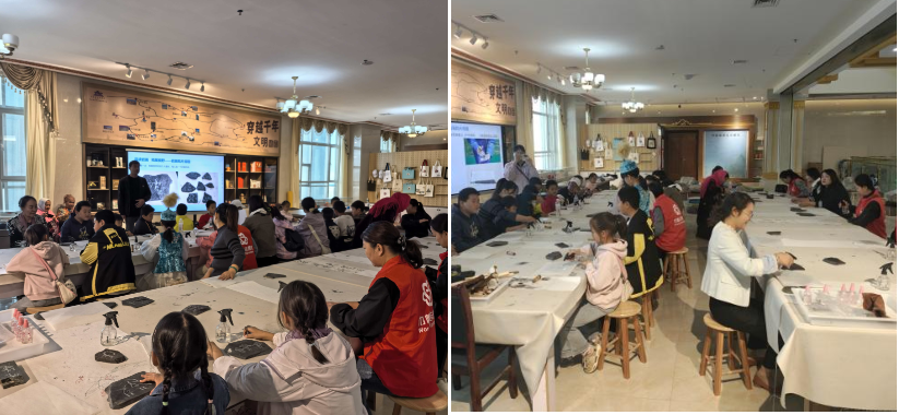中秋月满,国庆情浓。在双节假期中感受本土历史文化魅力,增进亲子互动,肃北县博物馆精心策划并开展了岩画拓片亲子研学活动。活动一经推出便受到热烈欢迎,吸引了多组家庭踊跃参与,大小参与者们在亲手操作中触摸远古文明,在欢声笑语中传承文化记忆。