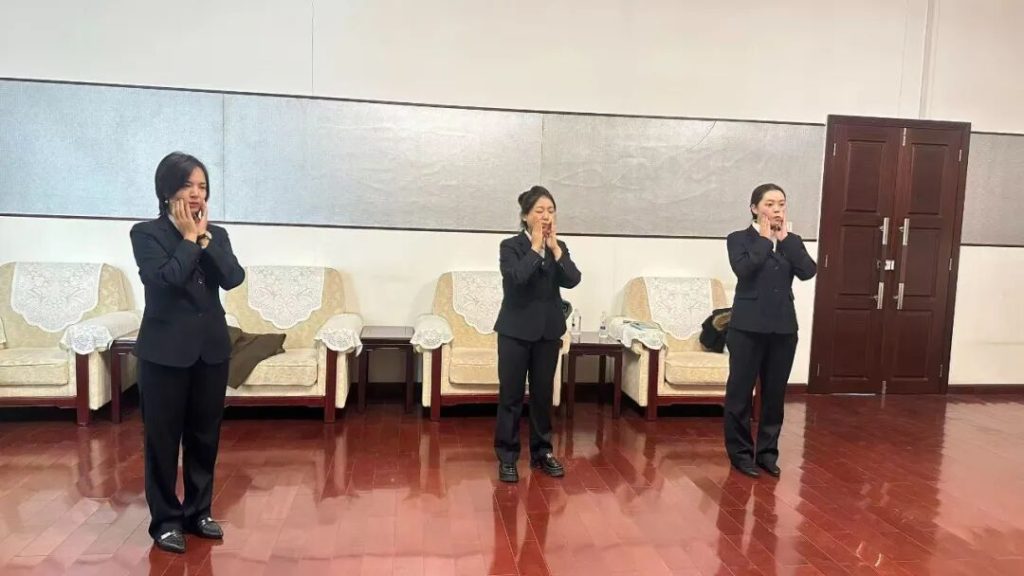 本次培训围绕讲解员的基础素养、专业技能和实践应用三个方面展开。在培训中,甘肃省博物馆资深讲解员介绍了讲解过程中的礼仪规范、知识储备、语言表达、讲解技巧、应急处理、模拟演练等内容,并向讲解员们作专业讲解示范。